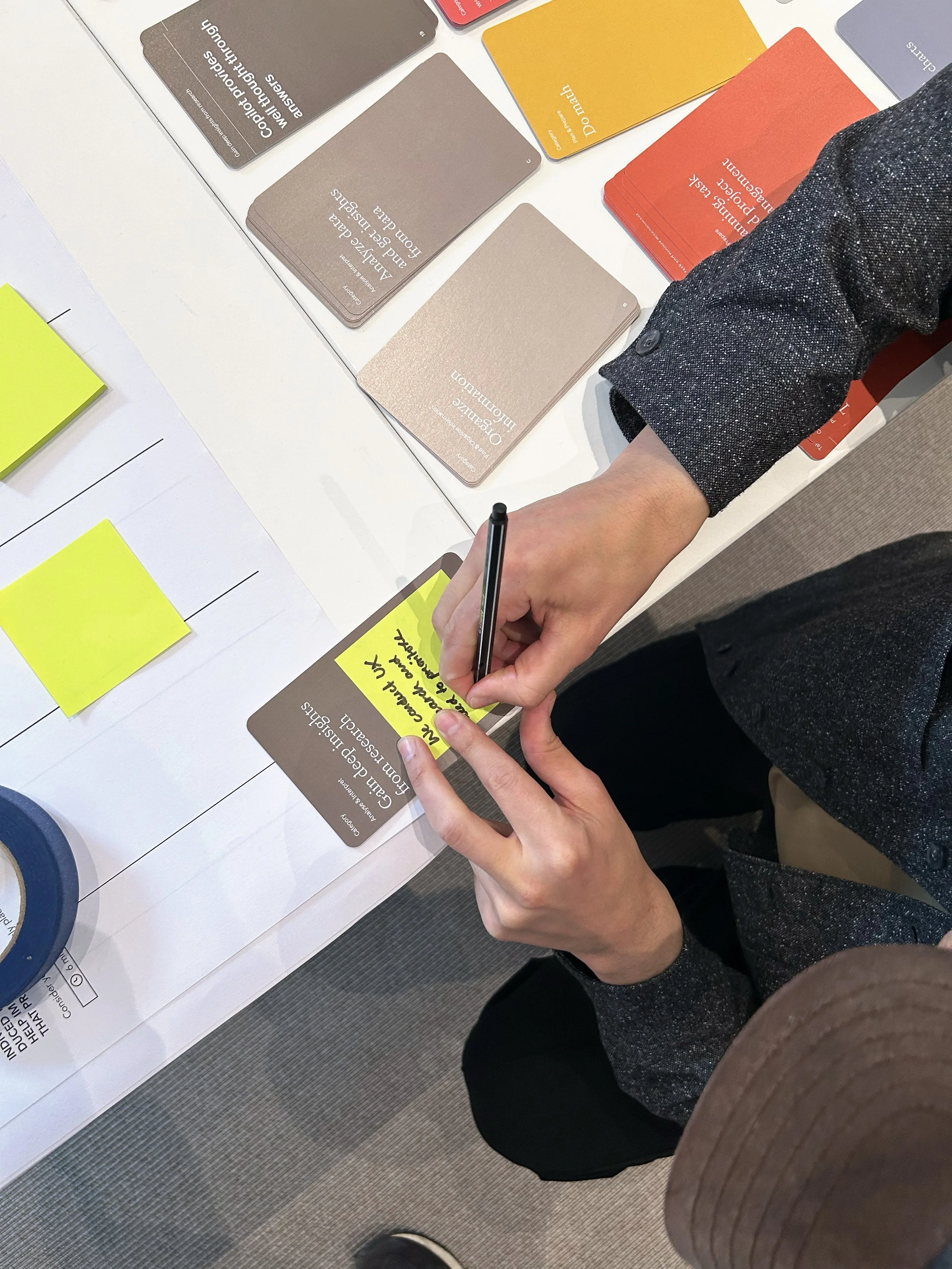 This serves two purposes. First, it ensures a consistent, high-quality experience regardless of the trainer in the room. Second, it gives the team ownership of the process — they're in control, not passive recipients of a training. The result is a more engaged group and conclusions that feel genuinely theirs.