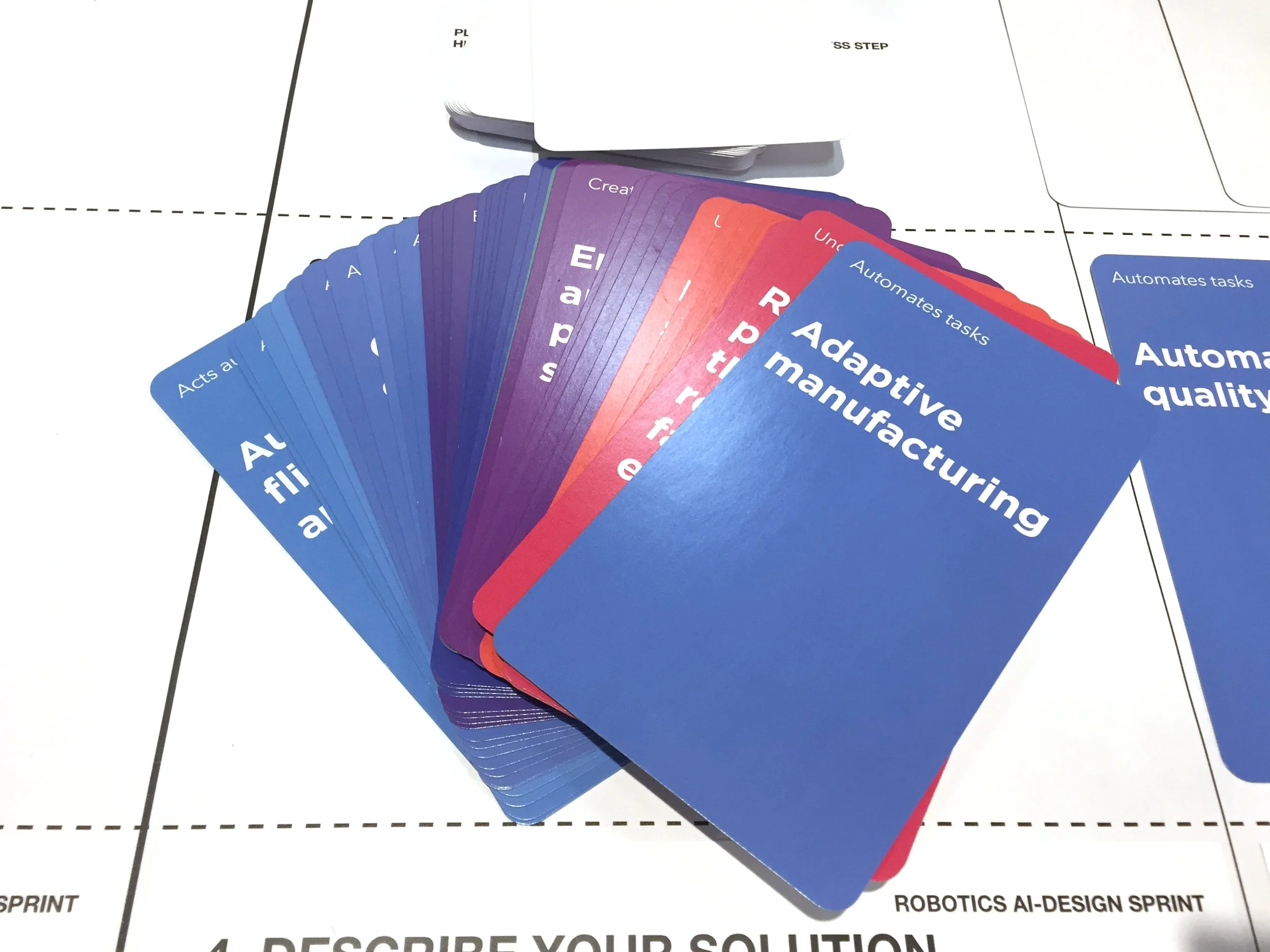 Using our AI Cards® and Factory Floor Robotics Cards, you identify high-level opportunities to improve your factory with AI and robotics.